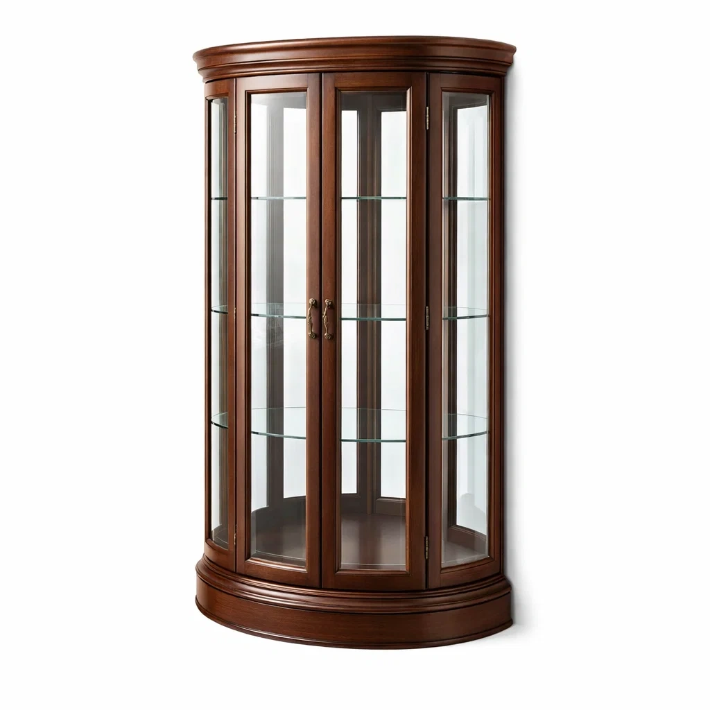 Caractéristiques : Vitrine d'angle avec porte vitrée et étagères en verre