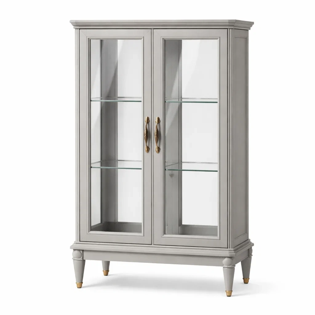 Corps en bois avec des portes en verre trempé de 5 mm d'épaisseur et des poignées en métal.