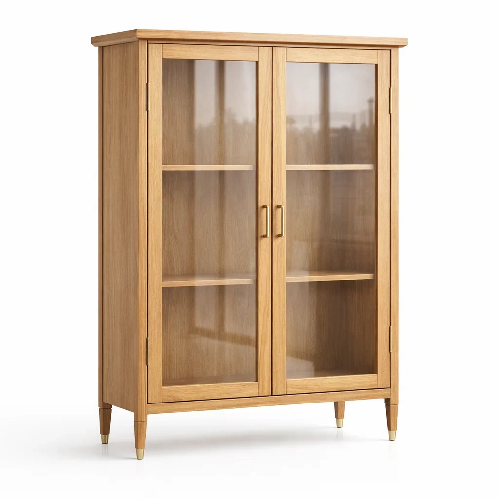 Cette vitrine est fabriquée en chêne massif avec des portes en verre trempé de 4 mm d'épaisseur. Elle comprend trois tablettes pour un espace de rangement spacieux. Les dimensions sont de 150 cm de hauteur, 90 cm de largeur et 40 cm de profondeur. Le poids total est de 50 kg.